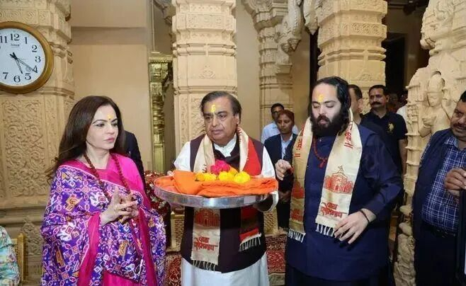 1月3日,他带着妻子妮塔·安巴尼和儿子到达索姆纳特寺拜林伽。林伽就是丁丁,他儿子体重300多斤,健康堪忧,结婚两年多,老婆一直没怀上。去请湿婆帮个忙,也是有科学道理的。