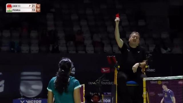 面对印度一姐辛杜,陈雨菲直落两局晋级女单半决赛。这场球陈雨菲全程掌握主动,没有给辛杜太多的机会。而且此役辛杜还吃到了一张黄牌和红牌。辛杜先是因不服裁判判罚而被出示了一张黄牌,然后又因拖延时间被出示红牌罚掉1分。此外,陈雨菲和辛杜网前斗小球时,被裁判判罚过网击球,不过陈雨菲没有理论,直接走回了场地准备下一分。