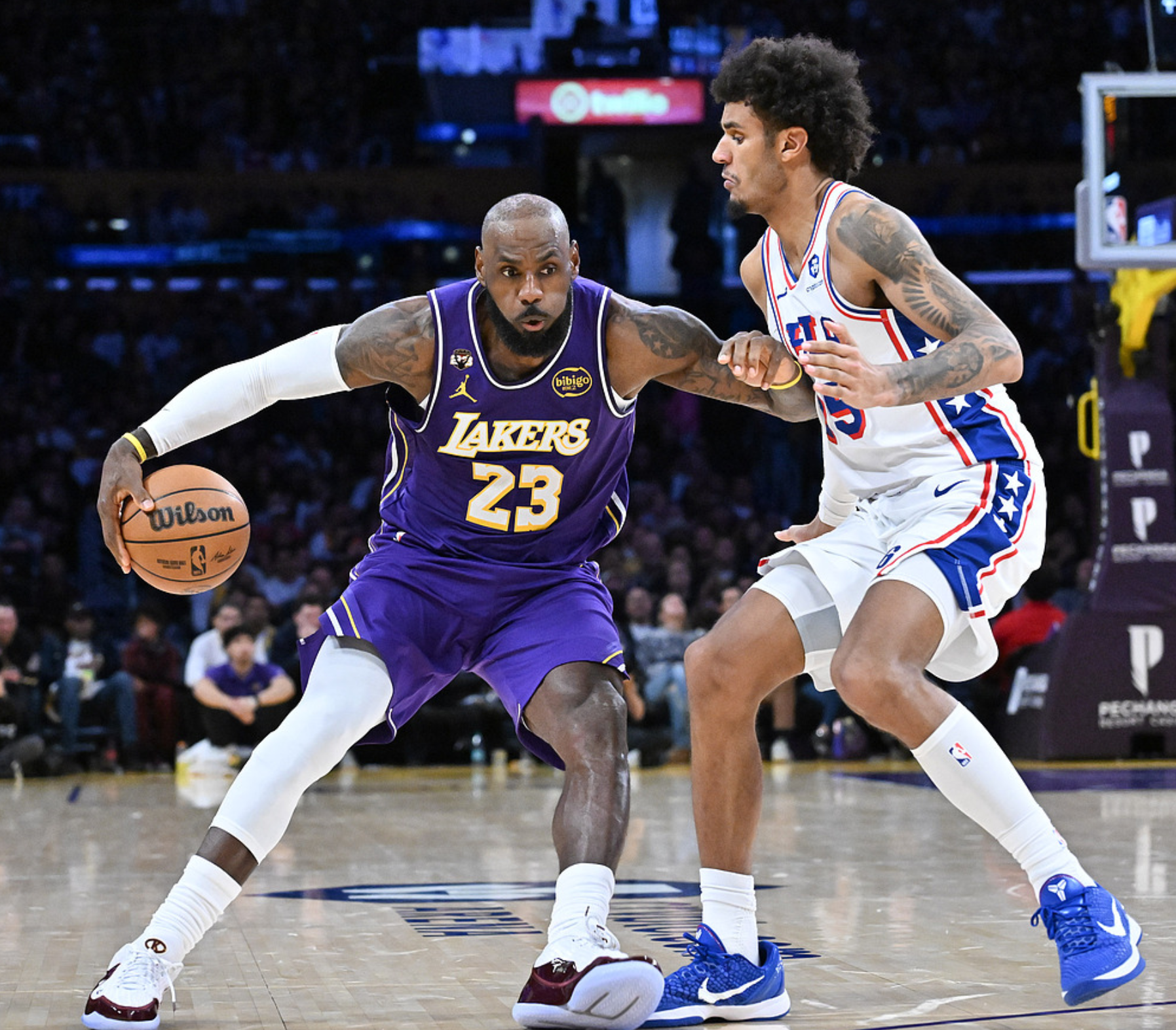 是什么纪录呢?北京时间2026年2月6日,30胜19负的湖人主场迎战29胜21负的76人,此战东契奇打了16分钟伤退,76人前三节压制湖人,一度领先14分,三节战罢领先2分。第四节里夫斯、詹姆斯携手爆发,里夫斯开局独得8分,带领湖人反超6分,随后詹姆斯不断得分,扩大优势,湖人一度领先16分,不过76人很顽强,一度把分差追到2分,但功亏一篑,湖人最终119-115击败76人。詹姆斯第四节得到10分,里夫斯第四节得到13分。